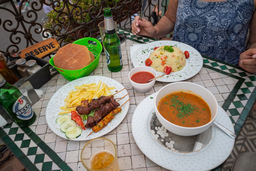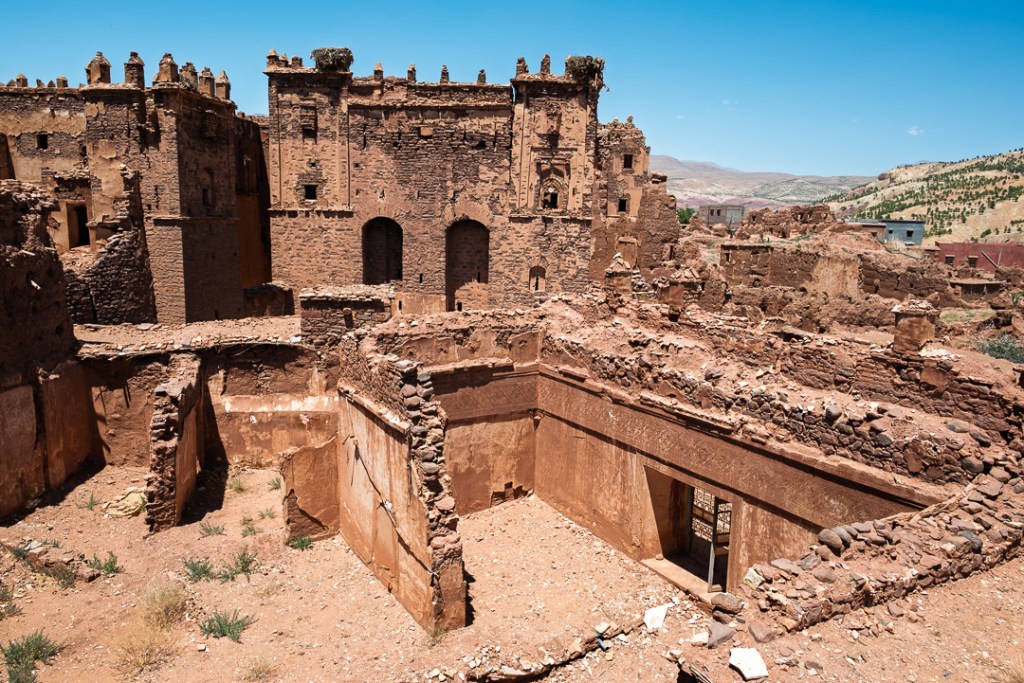 El último tramo de vuelta a Marrakech pasa noche en Hotel Atlas, en Ighrem Nougdal Agouim, un alto rural a dos horas del destino: un pequeño pueblo pero con mucho ajetreo de coches, burros y personas, con vistas a colinas áridas y cena sencilla que cierra el viaje con el cuerpo exhausto pero lleno. El silencio del pueblo de paso permite un último paseo al alba, notando polvo incrustado en la piel y el eco de adhanes acumulados.