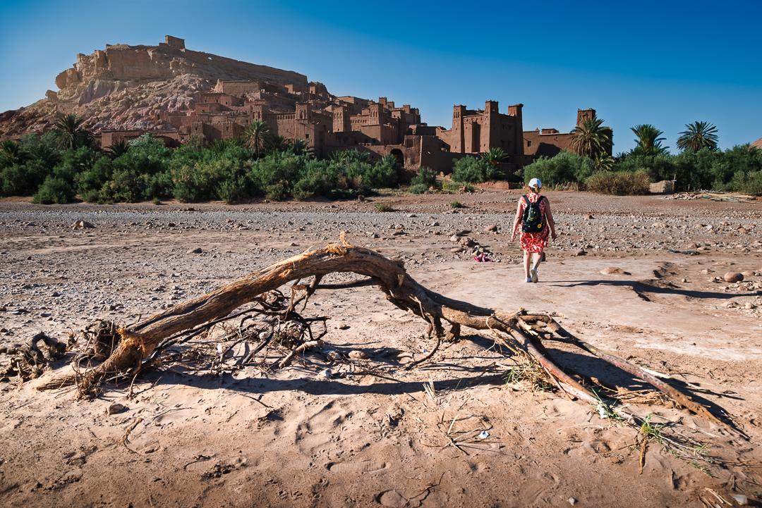 Alquilado un coche, el día 3 abandona la ciudad rumbo al Oasis de Fint, un palmeral escondido —n’fint significa “oculta” en bereber— a 10 km al sur de Ouarzazate, habitado por nómadas venidos de Mali que ahora cultivan dátiles en casas de pisé junto al wadi. La Auberge Restaurant TISSILI recibe con cena típica —tajín humeante, pan recién horneado— mientras un gato nos observa esperando algún trozo de carne, y la noche estalla en estrellas: el cielo sin contaminación obliga a girar la cabeza lento, capturando la Vía Láctea mientras el fresco del desierto aclara el aire. El silencio aquí pesa, roto solo por el rumor del agua y un perro lejano.