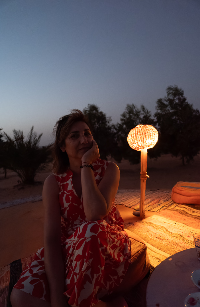Entrando en el desierto, el Krich Camp en Merzouga, marca cuatro noches inmersivas: Hassan recibe con hospitalidad bereber, Mohamed nos lleva en 4×4 por las dunas de Erg Chebbi, subiendo arenas que queman al mediodía y se tiñen de oro al ocaso.