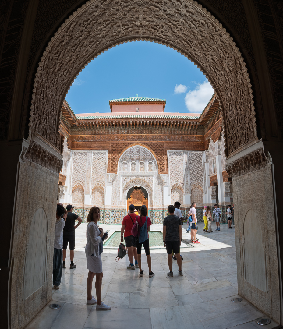 Desde el riad, los días se hunden en Marrakech: el zoco impone laberintos interminables de puestos donde el regateo pasa de números a gestos, con bronces relucientes bajo lonas raídas y el calor de un mes de junio que aplasta las mañanas. Caminar aquí exige pausas —un banco en sombra, un té que quema la lengua—, notando cómo la luz ocre tiñe fachadas almohades del siglo XII mientras el cuerpo se impregna de polvo fino. El riad regresa como refugio: su terraza invita a ordenar impresiones al atardecer, con el eco de la plaza subiendo como un pulso constante.