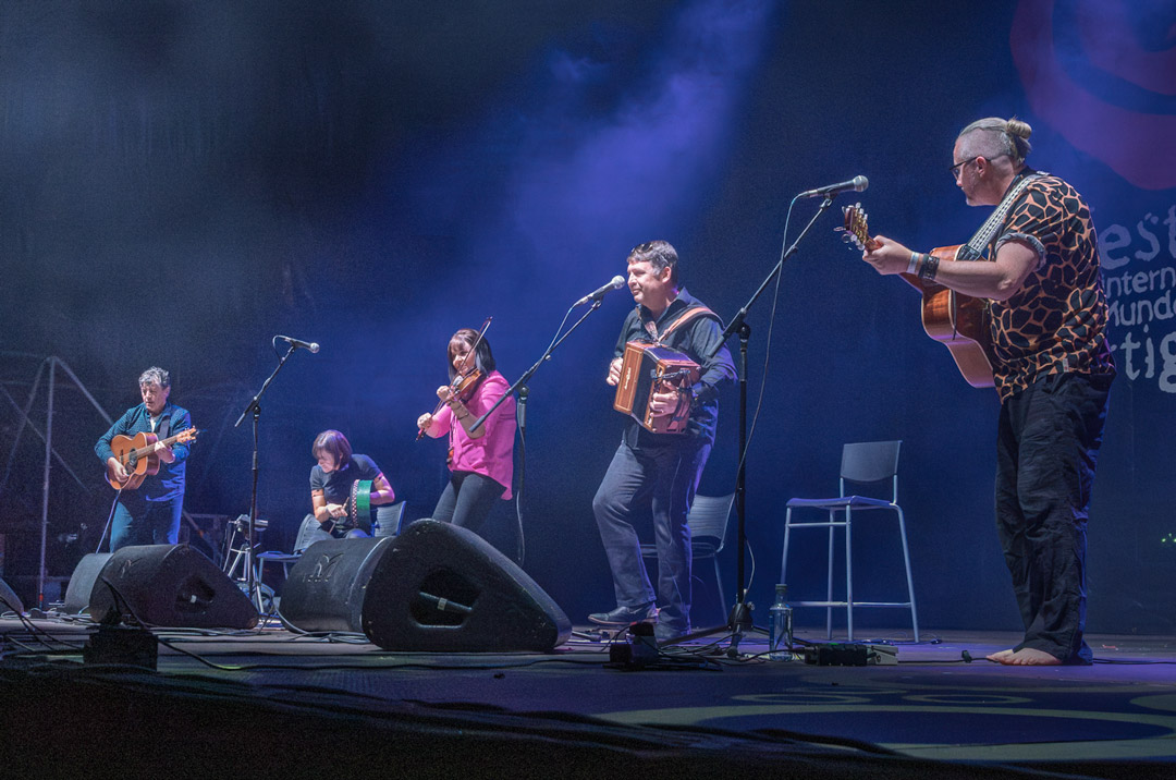 Aunque sus raíces están en el oeste de Irlanda, BackWest integra influencias de otras músicas celtas, como la gallega o la bretona, y disfruta colaborando con músicos de todo el mundo. En sus actuaciones combinan música, canción y danza, con la energía escénica de Peter, uno de los fundadores del famoso Lord of the Dance.