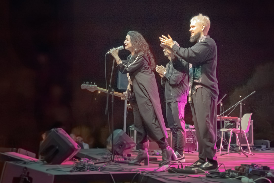 Rubén, que muchos recordarán por Rarefolk, es un flautista gallego afincado en Sevilla con una capacidad increíble para combinar tradición y vanguardia. John Conde, con sus guitarras, aportó texturas cálidas y un aire de improvisación muy orgánico, mientras que Mangu Díaz, armado con sintetizadores modulares y una mandolina eléctrica, tejía paisajes sonoros que envolvían todo el parque. Fue un cierre perfecto para una noche que celebró la diversidad musical sin prejuicios.